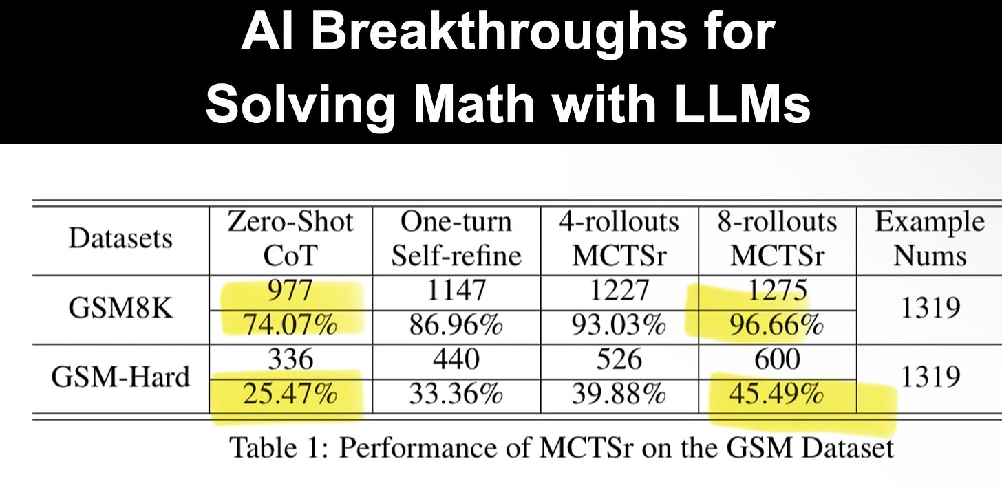 AI large language models have been especially weak on math. There are now several papers from Google Deep Mind, Alibaba and other universities where AI large language models are at Math Olympiad levels and multiple step reasoning even with small models.