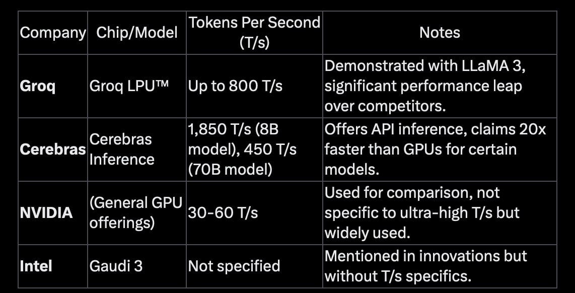 ‣ Llama3.1-70B at 450 tokens/s – 20x faster than GPUs