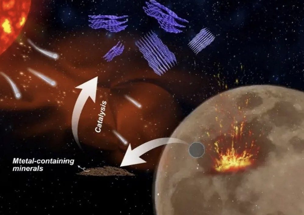 The identification of graphene in the core-shell structure suggests a bottom-up synthesis process rather than exfoliation, which generally involves a high-temperature catalytic reaction. Therefore, a formation mechanism of few-layer graphene and graphitic carbon is proposed here. Volcanic eruption, a typical high-temperature process, occurred on the Moon. Lunar soil can be stirred up by solar wind, and high-temperature plasma discharge can be generated on the Moon’s surface. The Fe-bearing mineral particles, such as olivine and pyroxene, in lunar soil might catalyze the conversion of carbon-containing gas molecules in the solar wind or polycyclic aromatic hydrocarbons into graphitic carbon of different thicknesses and morphologies on their surfaces including few-layer graphene flakes and carbon shells. In short, the formation of graphitic carbon may be attributed to high-temperature processes resulting from volcanic eruptions. Importantly, this mechanism suggests the presence of a carbon-capture process on the Moon, which might lead to the gradual accumulation of indigenous carbon. Since the discovery of graphene in meteorites or on the moon is extremely rare, impact processes from meteorites, which create high-temperature and high-pressure environments, may also lead to the formation of few-layer graphene and graphitic carbon. Further research is needed to understand its formation mechanism in detail.