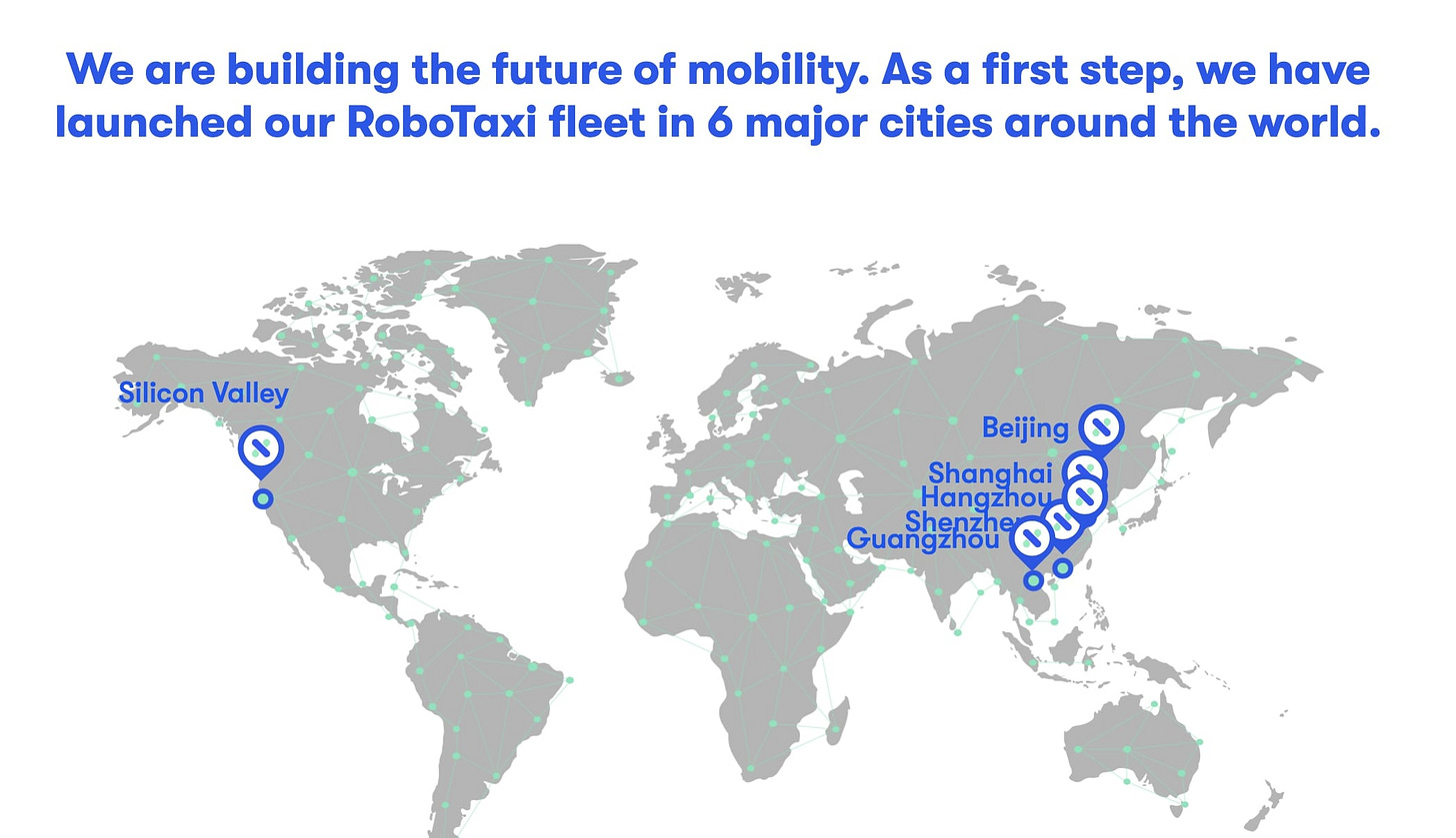 Apollo, AutoX, Pony.ai, Didi and WeRide each have hundreds of robotaxi vehicles and operate in 10 to 25 cities in 2024 and could be up to 65 cities in 2025. Apollo, Didi, AutoX and Pony.ai could have thousands of robotaxi in 2025. Apollo is targeting to become profitable in 2025.