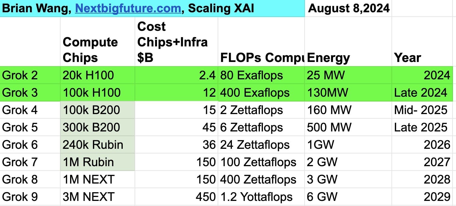 Here, Brian Wang describes the scaling of Grok 4 and 5 using 300,000 twenty Petaflop Nvidia B200 chips in 2025 and going beyond to 1 million Nvidia Rubin chips.