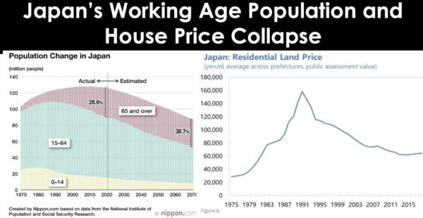 Japan's overall population fell from 128.1 million in 2010 to 122 million today but Japan's working age population peaked in 1995. If we discount the economic bubble then the real estate collapse from the 1990s to today correlates with the working age population collapse.