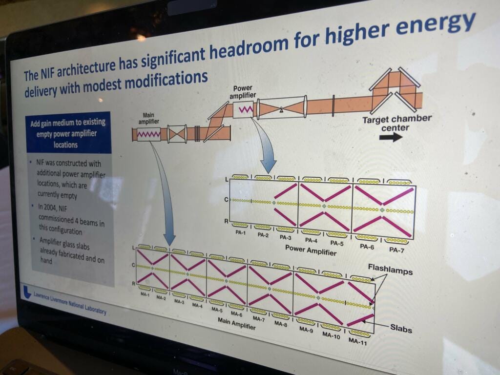 They could achieve 10-20MJ or more at 2.6MJ and 30+MJ with 3 MJ at NIF.