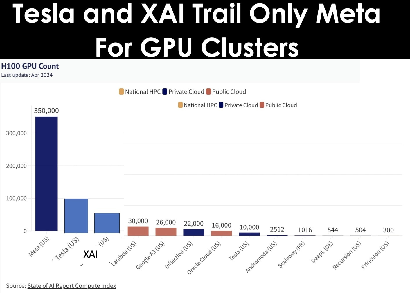 Elon indicated that a recent chart showing Meta leading on the GPU count and Tesla trailing at 10,000 G100 GPUs. Microsoft and OpenAI would also have higher GPU counts. It is unclear why Microsoft -OpenAI GPU counts were not included i…