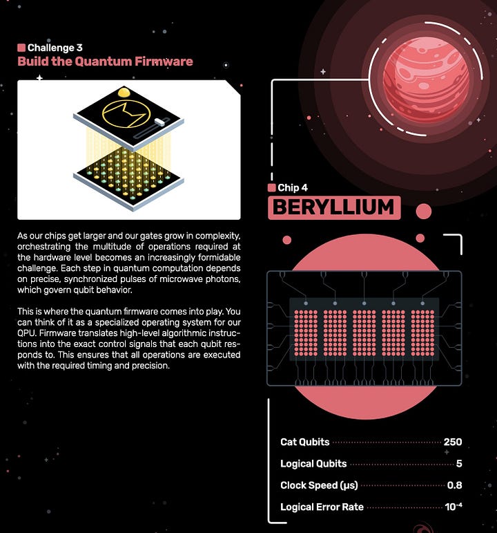 The Beryllium chip series will enable a universal set of logical gates enabled by magic state factories and live error correction, unlocking the ability to run any quantum algorithm.